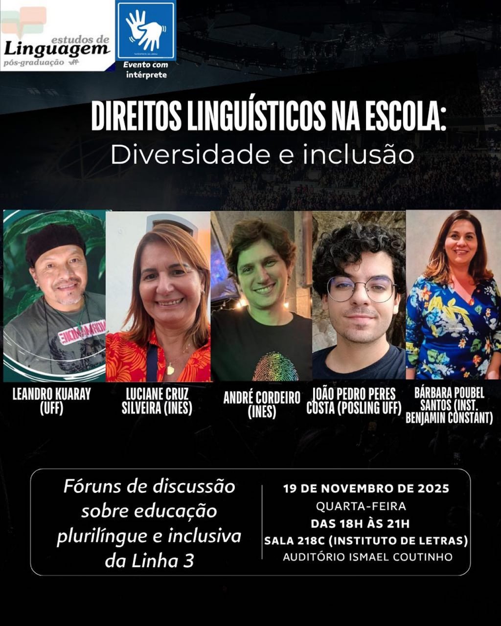 A Linha 3 (História, Política e Contato Linguístico) do Programa de Pós-Graduação em Estudos de Linguagem da UFF convida pesquisadores, profissionais, ativistas das comunidades e interessados na temática de um modo geral a participarem no 2º Fórum de Discussão sobre Educação Plurilíngue e Inclusiva. A roda de conversa “Direitos Linguísticos na Escola: Diversidade e Inclusão”…