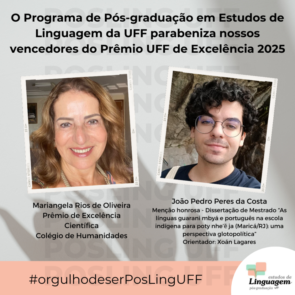 A Profª Luciana Sanchez Mendes e o Prof. Xoán Lagares, integrantes do GT Transferência de Conhecimento e Popularização da Linguística do PPG Estudos de Linguagem, marcaram presença na I Mostra Proext-PG da UFF, ocorrida no dia 9 de outubro de 2025. No evento, os docentes apresentaram os resultados de ações desenvolvidas pelo PosLing UFF. O…